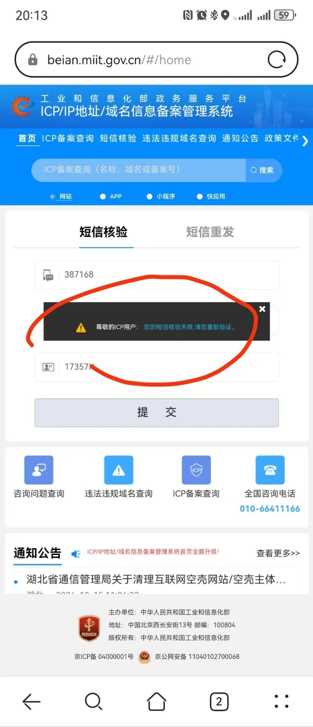 收到备案短信了,提交信息也无误,但是一直提示备案失败。