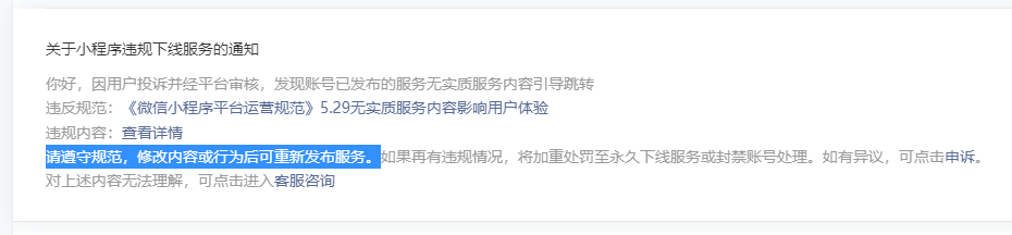 请问:这种情况,我按要求把小程序整改后,能不能再上架小程序服务?