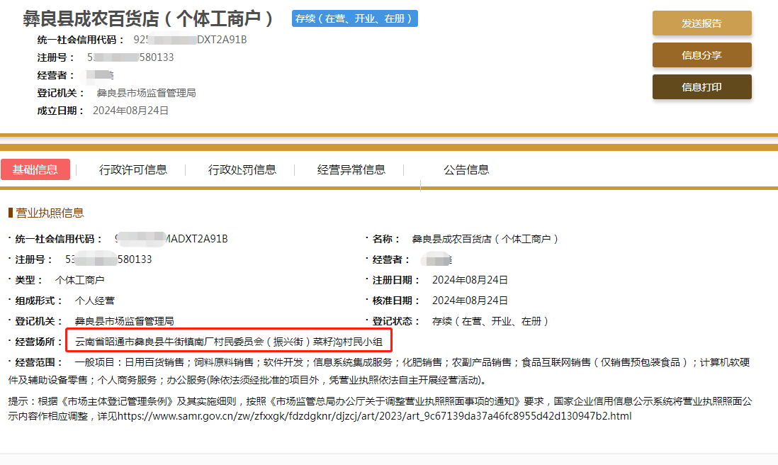 也通过国家企业信用信息公示系统查询到的【经营场所】,核对并复制的地址,依然提示不一致。