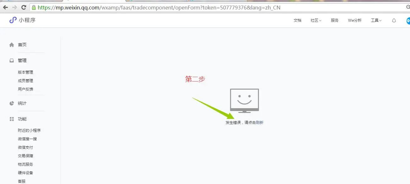 小程序申请接入自定义交易组件,在商户号申请---填写基础信息时,报错:发生错误。请问怎么回事,有解决办法吗?