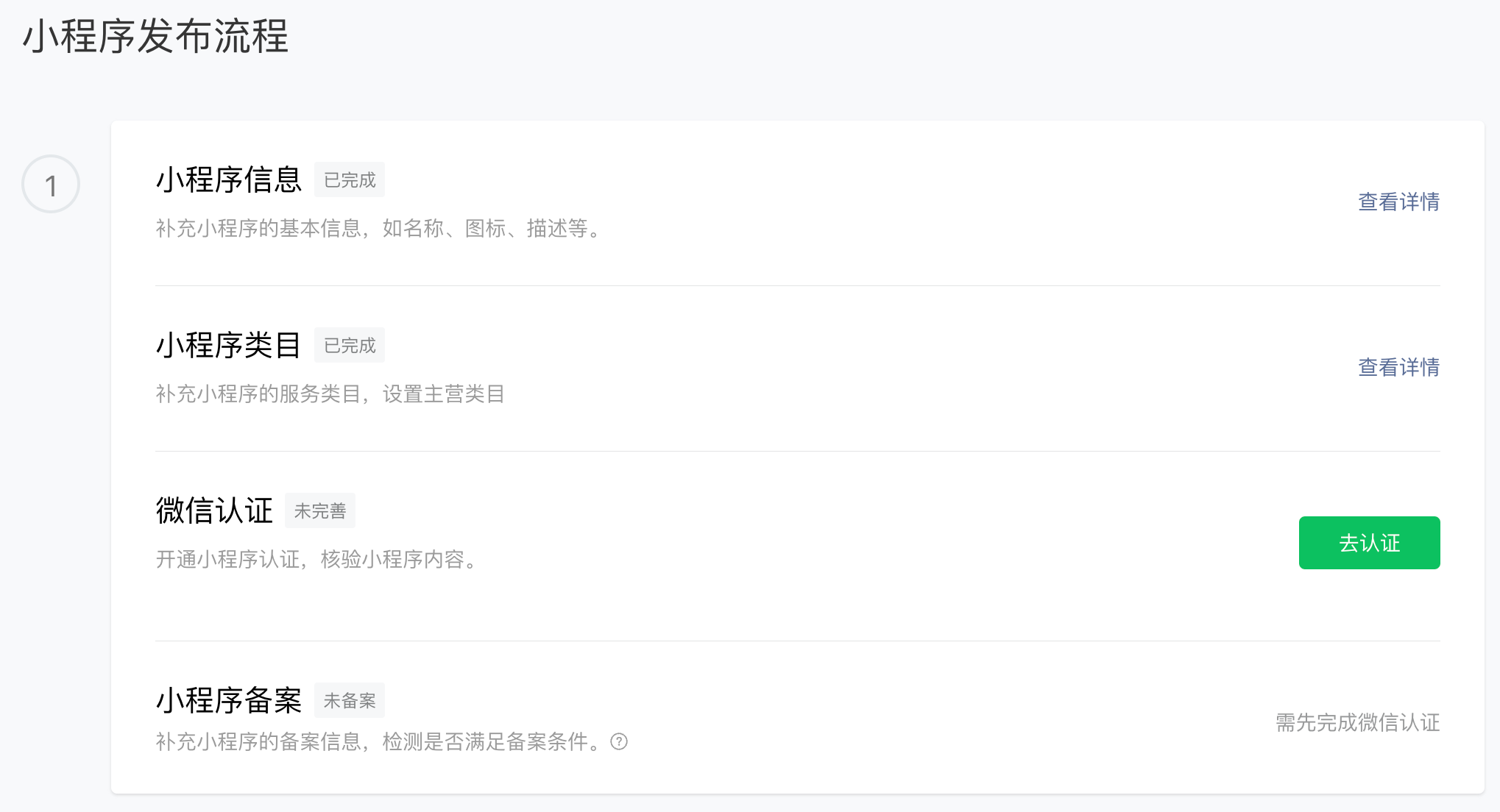 微信公众号已经认证成功了,复制公众号的资质到小程序。但是小程序一直显示没有认证