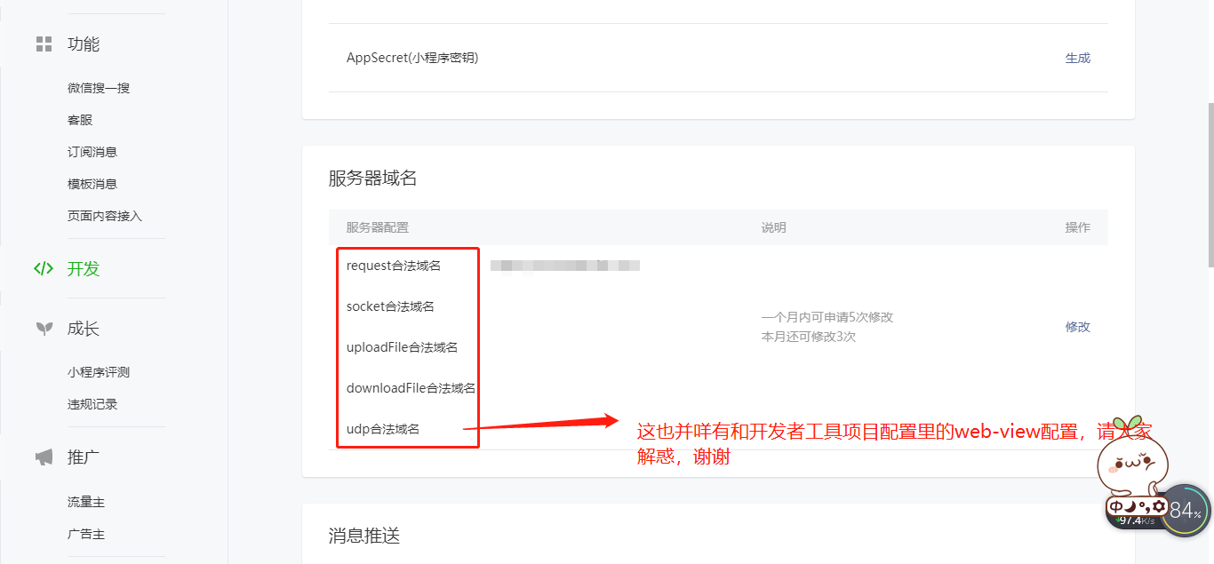 至于没有业务域名配置的选项 是因为 个人开发者不支持使用webview。