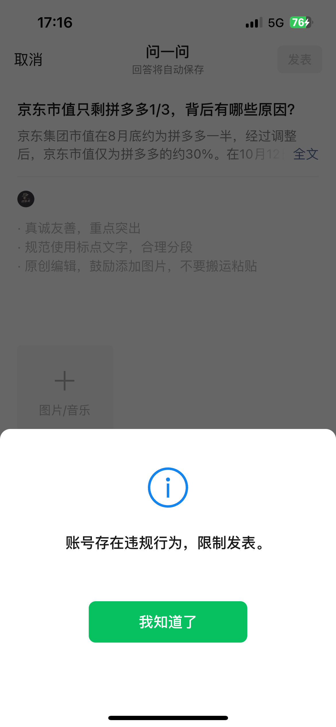 这个和转企业号没关系,应该是之前回答的内容有违规