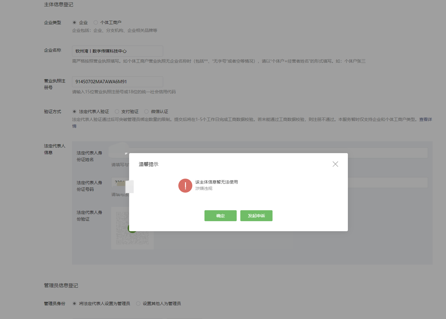 新公司,从来没注册过腾讯公众号,没使用过腾讯任何服务,为什么不能注册公众号?法人验证,对公账户验证,微信300元验证都不能注册下一步。提交了几次腾讯客服,什么也没解决 ,一点都不专业,连涉具体嫌违规的原因都解释不了,就是机械性回复按照注册页面提示正常注册,我要是能正常注册就不找客服解决问题了啊……真是头疼,如果是涉嫌违规,总要告知是哪里涉嫌违规,是公司主题吗名字吗?但营业执照上就是这个名字啊……