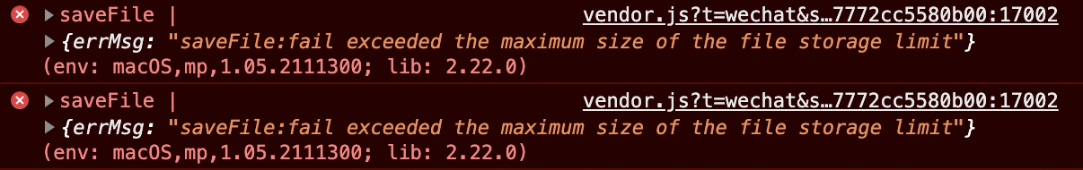 saveFile:fail exceeded the maximum size of the file storage limit 10M