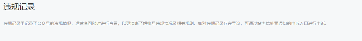 微信公众号的【违规记录】是一直在还是多久被清除?