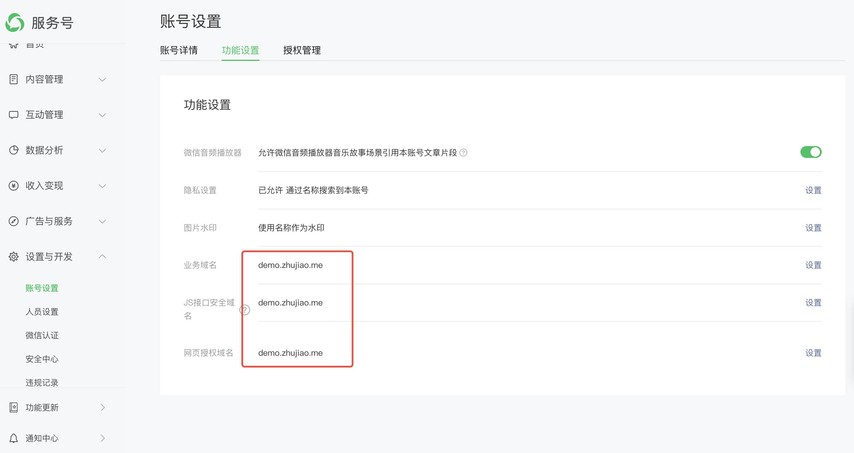 业务域名也已经配置,另外没有使用微信的 JS-SDK 的功能,就是公众号内使用的网页。