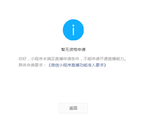 你好,经核实该小程序现已具备开通直播的能力,请重新申请开通。