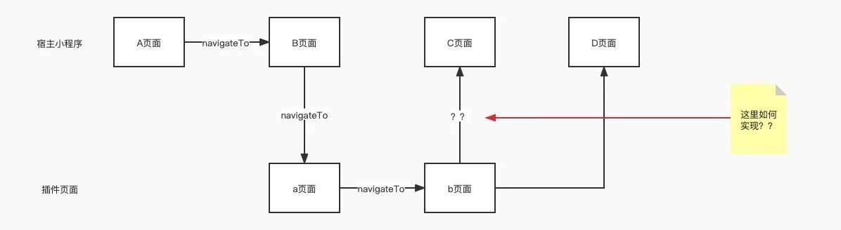 打开宿主小程序A页面,然后跳转到B页面,可以通过 navigateTo 跳转到插件页面 a页面,再从插件页面 a页面到 b页面,那么如何从插件页面b页面到宿主小程序C页面?