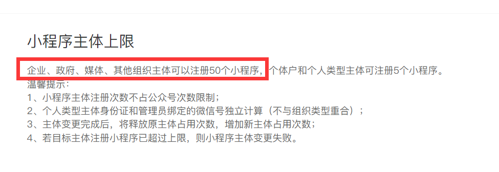 新公司主体,确认只有这变更的5个小程序,不存在其它小程序,绝对达不到50个上限,请各大神支招
