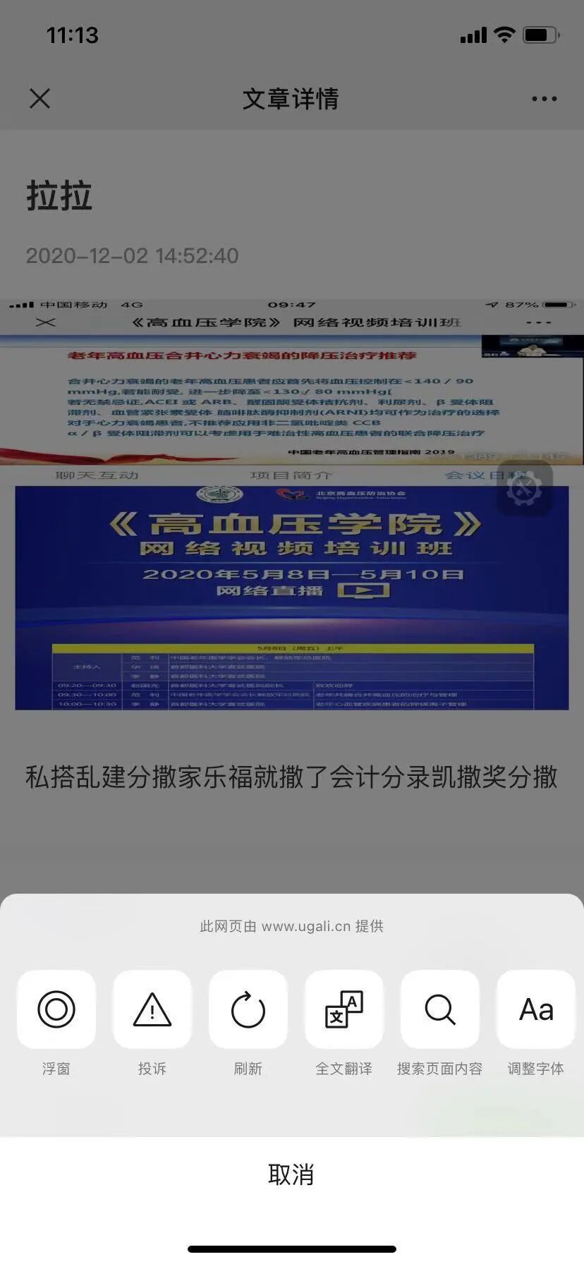 然后进入文章页禁用分享