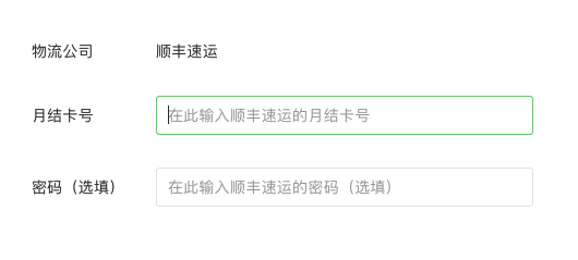 第一行输入的是:顺丰与你签约的时候,分配给你的月结账号,第二个是密码,如果这个账号没有密码,可以不填。