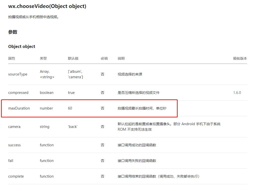 https://developers.weixin.qq.com/miniprogram/dev/api/media/video/wx.chooseVideo.html