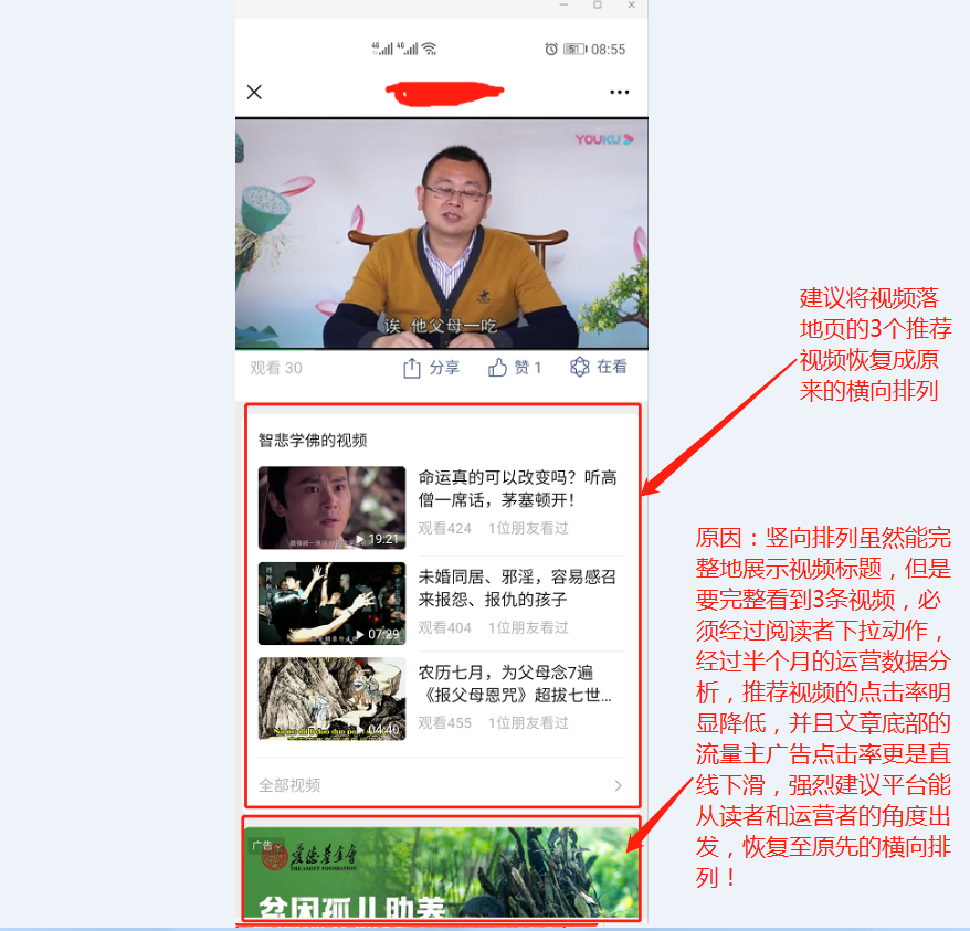 视频落地页智能全局推荐建议恢复成原先的横向排列!