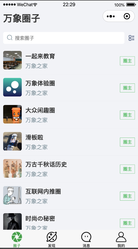 于是就有了做 万象圈子的想法。首先我们要对圈子下一个定义,圈子到底是什么,只有将这个定义把握好才能开展下一步的功能,不然很容易将圈子做成了贴吧、论坛性质的。
