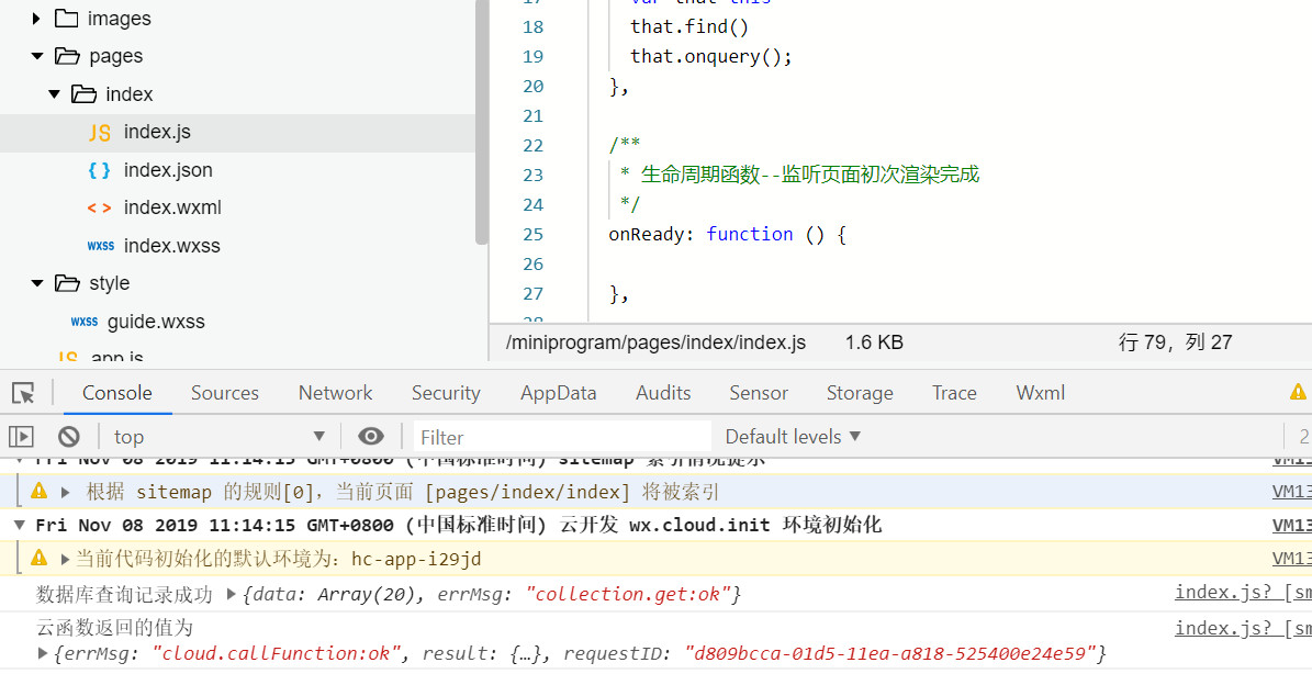 如图,原本的思路是获取当前时间然后进行数据库查询,但在实际运行中,从console中发现云函数的返回却在数据库查询之后,这是为什么?(find是在调取云函数,onquery是在数据库查询)