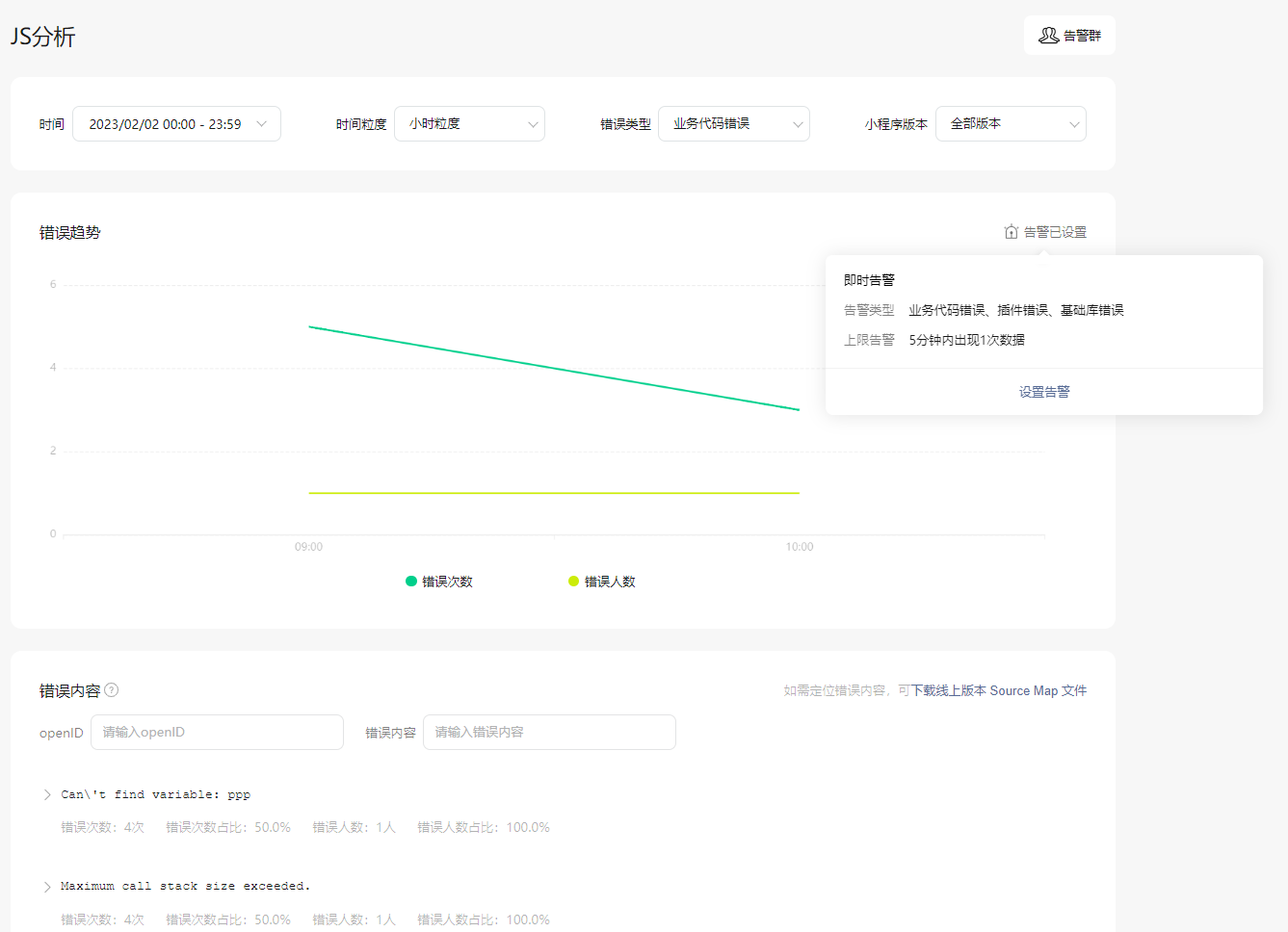 在we分析 设置js分析监控,及时警告为什么没有推送到微信群
