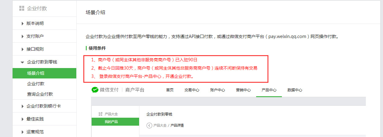 https://pay.weixin.qq.com/wiki/doc/api/tools/mch_pay.php?chapter=14_1 满足文档要求的条件,就可以申请开通。