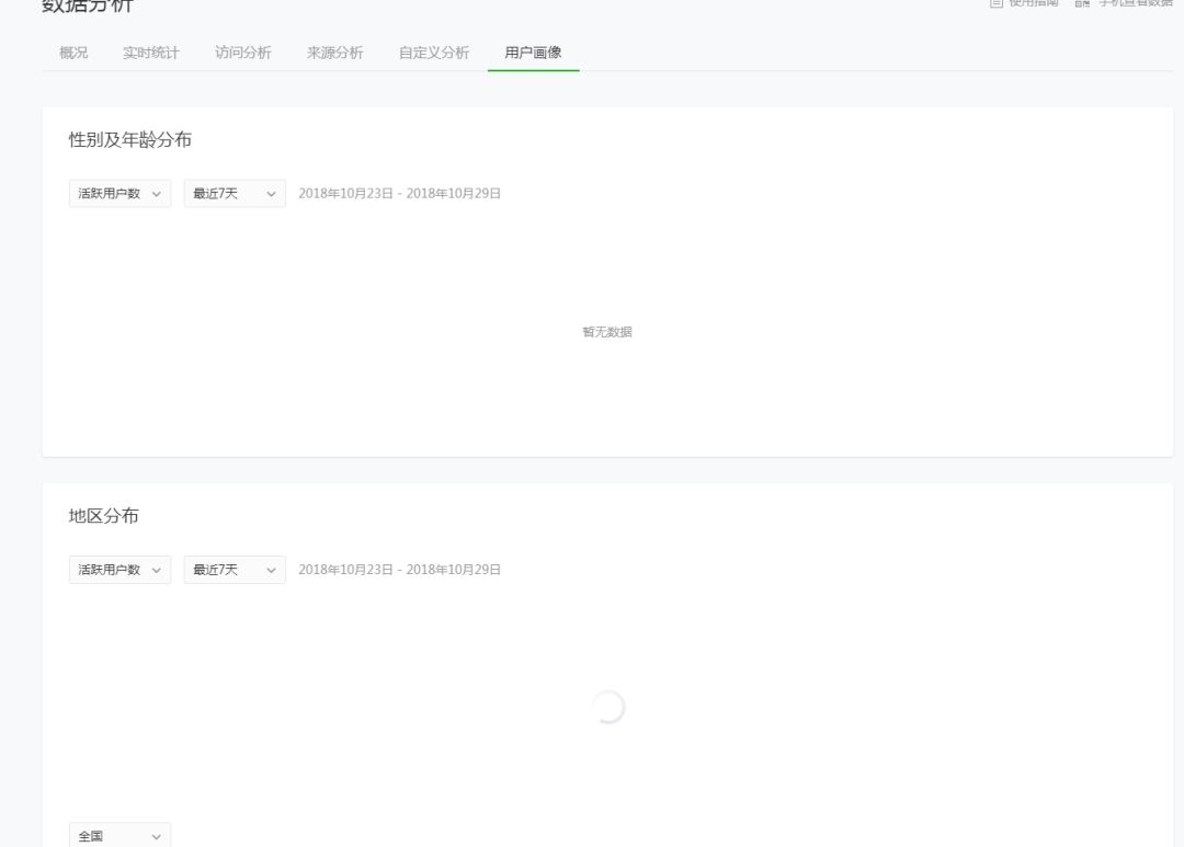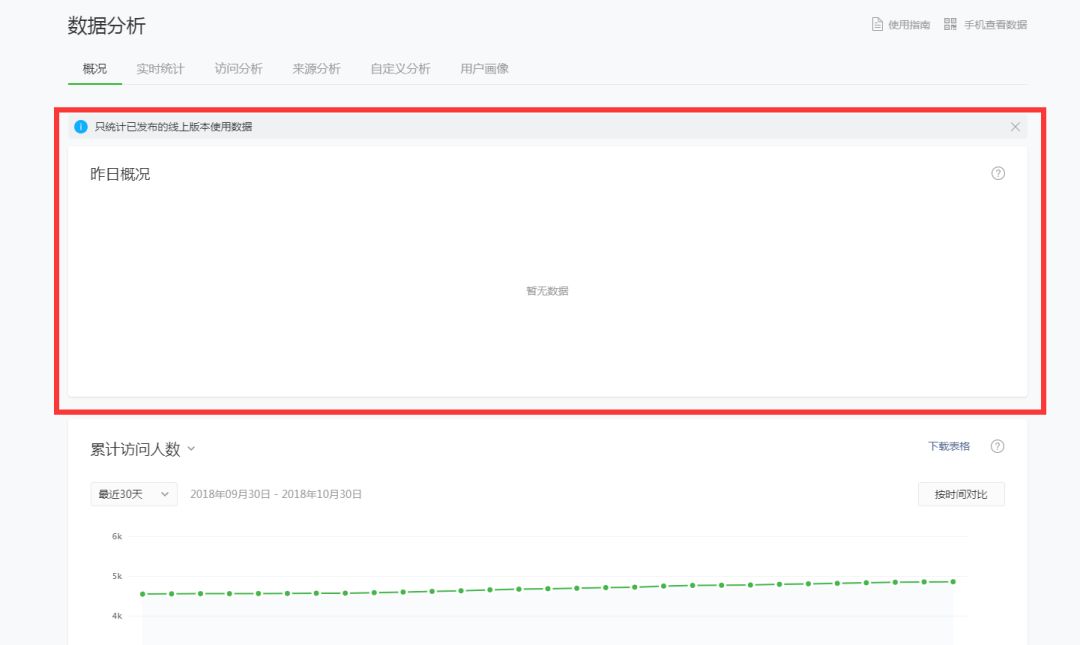 访问后台——数据分析,查看概况——昨日概况和用户画像,均不显示数据