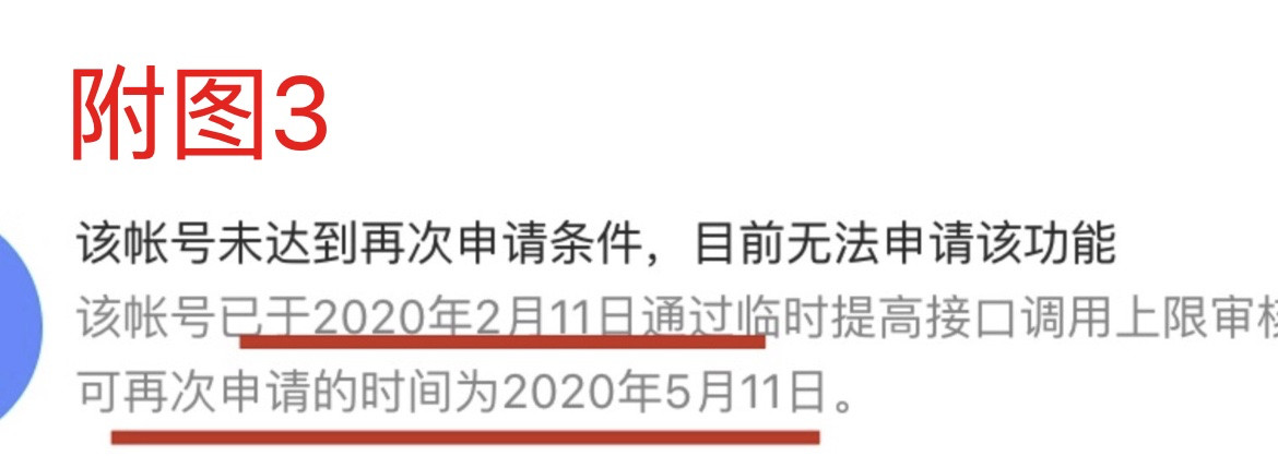 4)根据文档指导,我们已申请临时提高接口调用上限(见附图3),但目前过期了
