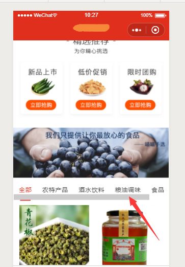 当页面滚动到红色箭头指向的tab时,直接固定在顶部