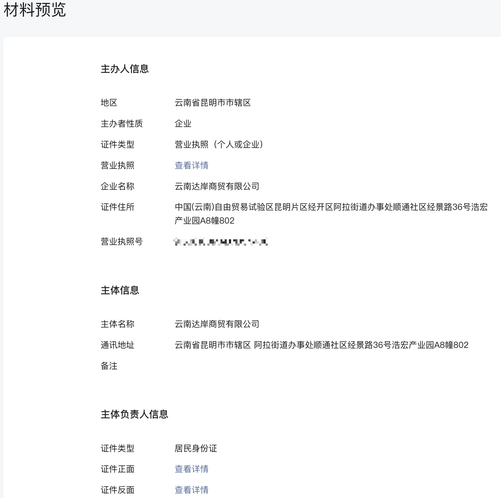 - 提交审核材料时没有更新营业执照的入口 ,只有选择主体负责人信息