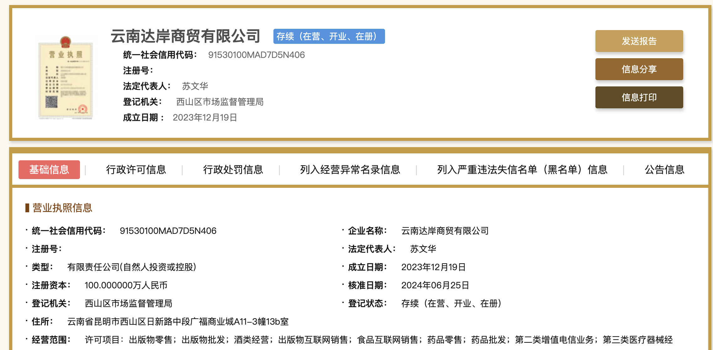 - 变更后的营业执照地址为:云南省昆明市西山区……