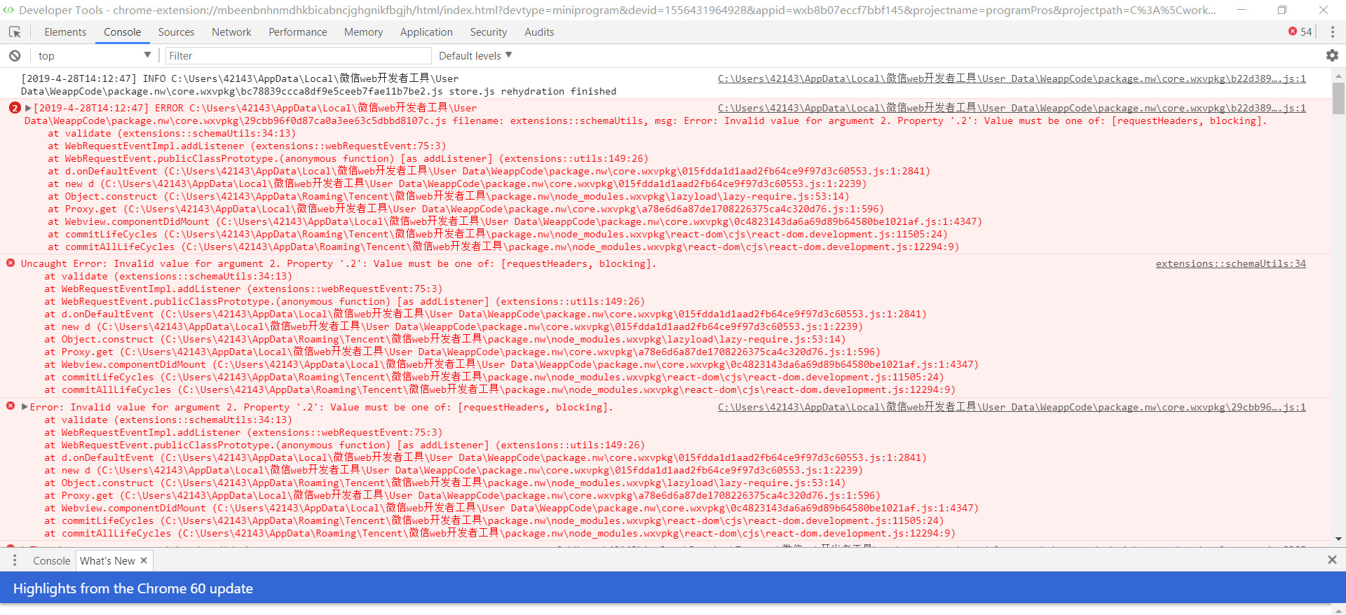 打开调试开发工具后看到54个错误求官方小姐姐帮忙解答一下