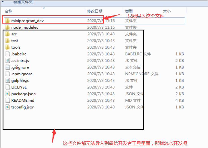 目前问题:只有npm run dev生成 miniprogram_dev之后,开发者工具能导入miniprogram_dev文件,但是导入不了其他的文件;