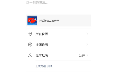 第二次转发的时候必没有图,但是拉起朋友圈填写想法和选择位置啥的的时候还有图