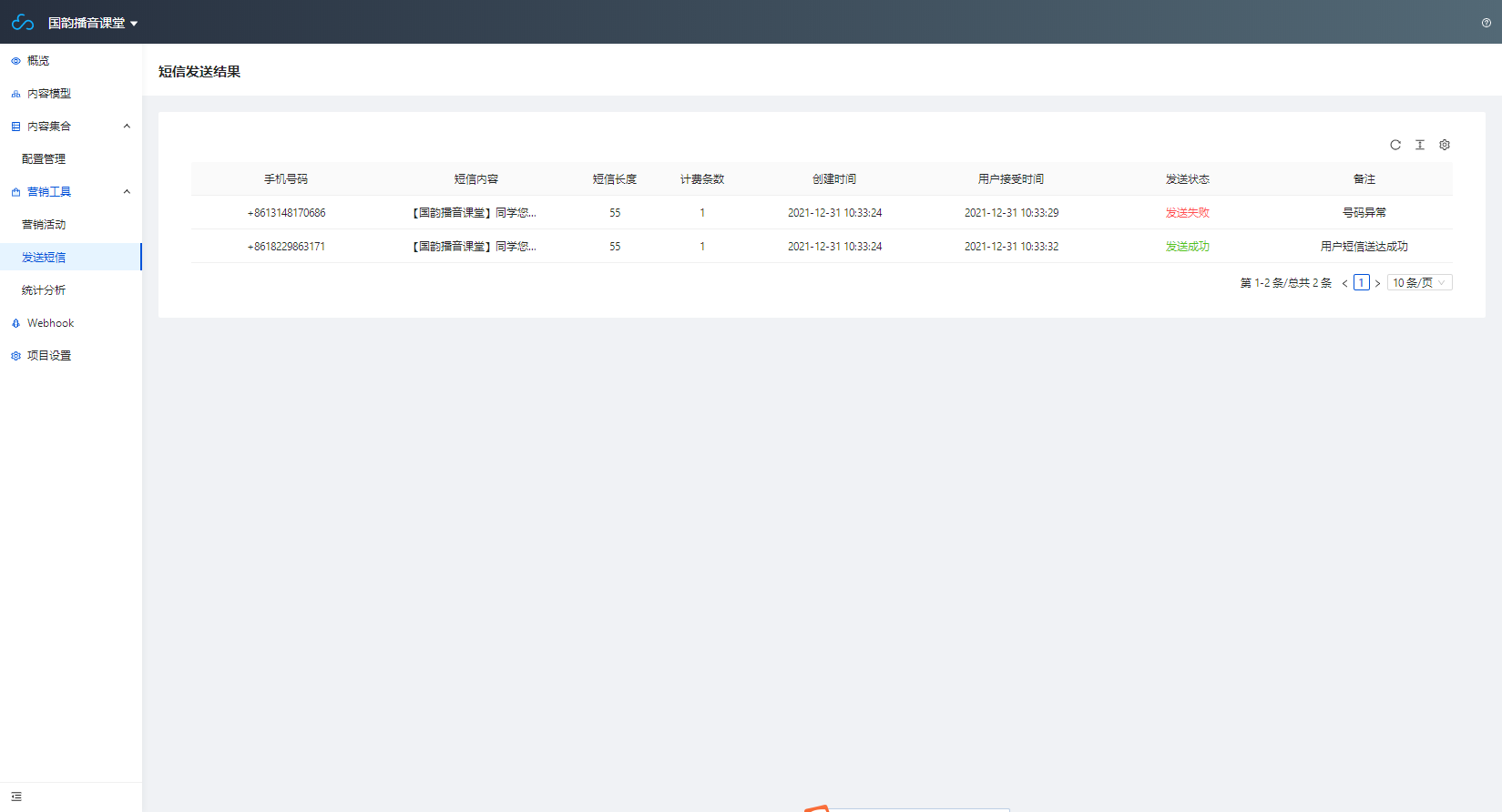 你好,短信发送状态请参考以下说明https://developers.weixin.qq.com/community/develop/doc/000c0ef5164798bbe2ac8621d51c09