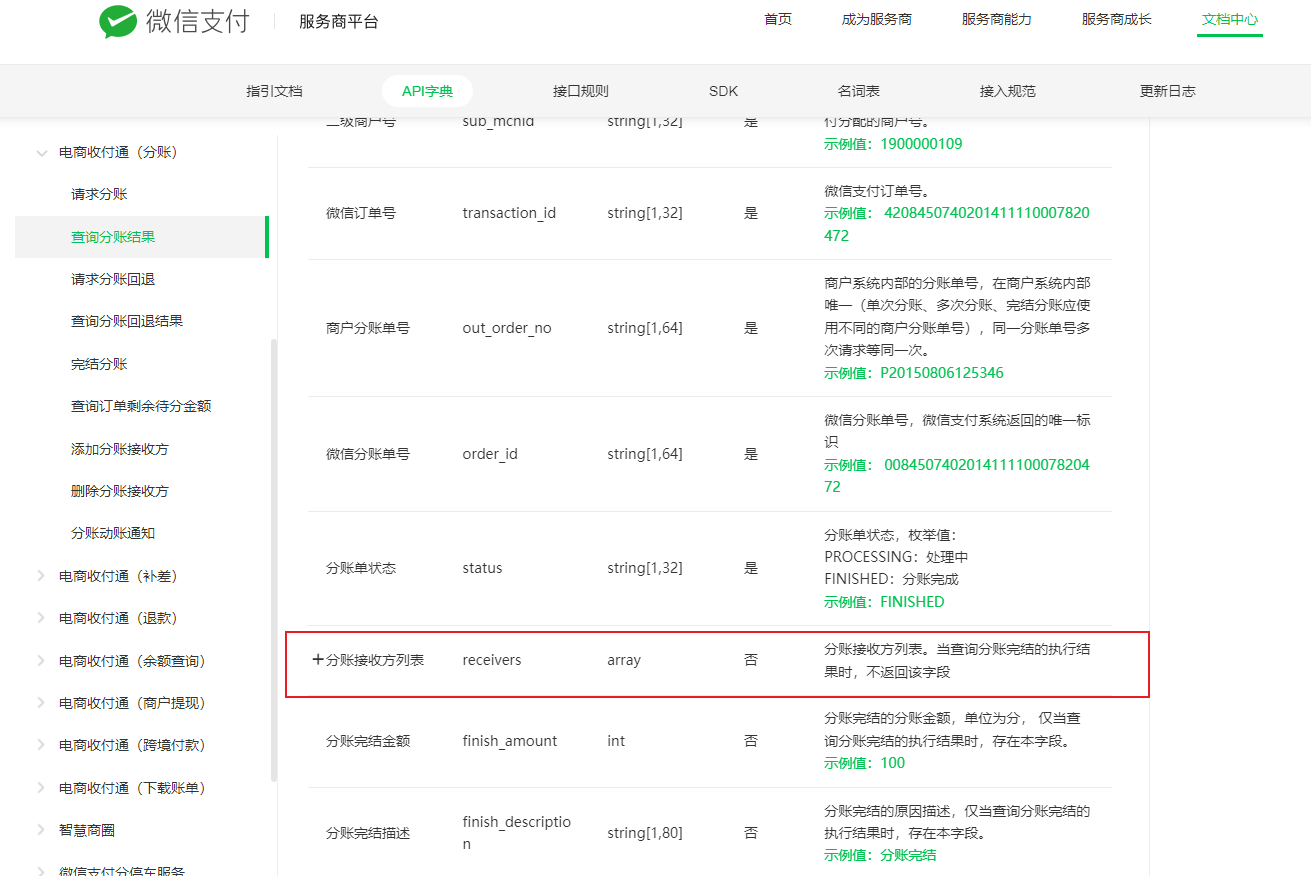 如果请求查询分账接口时out_order_no传入发起分账完结时的商户分账单号,就不会返回receivers信息