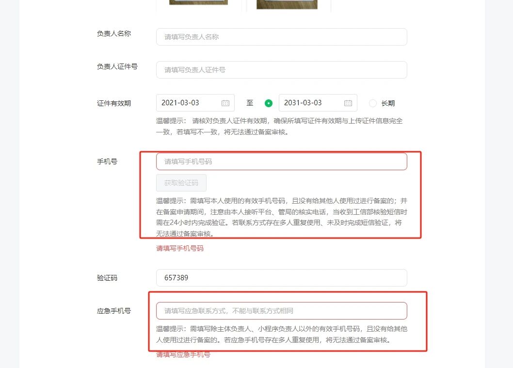 同一主体同一主体负责人不同小程序,主体负责人手机号可以填写一致。