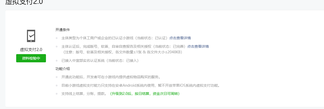 问题描述:这边游戏虚拟支付2.0提交资料之后已经显示资料检验中,之前已经反馈过一次了~现在已经三个月时间还是显示截图的提示,麻烦工作人员处理一下