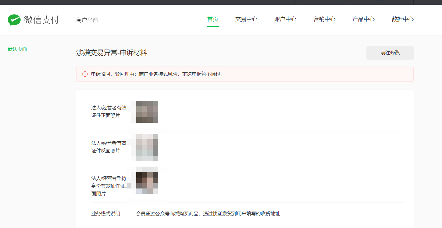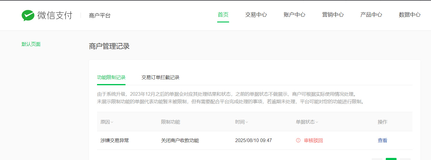 商户号:1721432558,提示涉嫌交易异常,商户号被限制支付,按要求提交 订单和商品的截图等变申诉材料