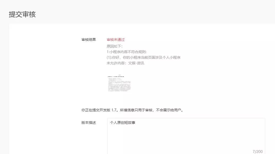 第一次提交代码后会未通过,然后进入反馈页面补充信息。尽可能的列出你能够拿出的所有证明,如果你的原创故事同时在网站上更新的话,可以提供ICP备案和公安网监备案,然后再强调自己不会提供有版权的在线阅读服务,只是一些个人的作品之类的。然后听天由命吧。