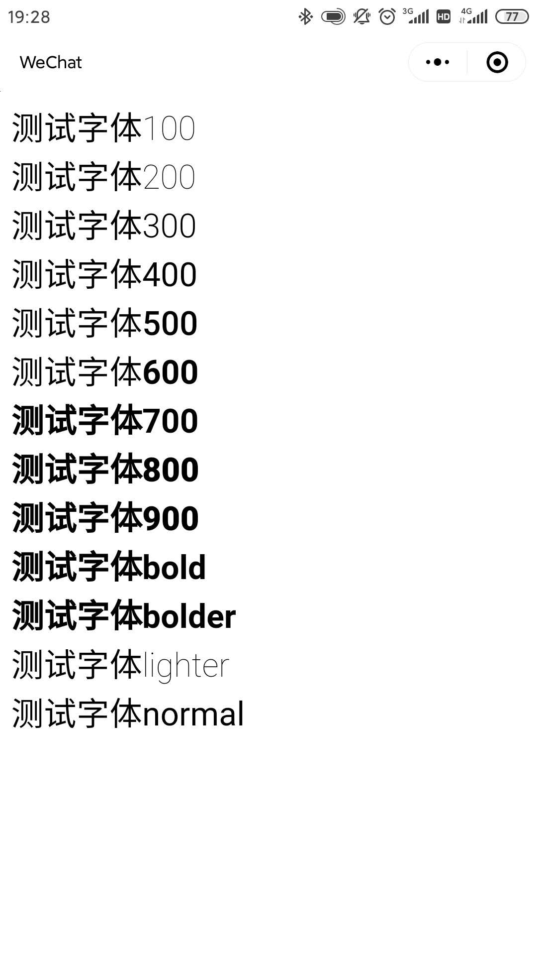 注意,安卓手机很有可能只有两种字体粗细,我拿我几个同事的手机测试过了,发现安卓手机似乎只有两种字体粗细(可能数字不一样),而苹果较为细致,有多种字体粗细程度 | 微信开放社区
