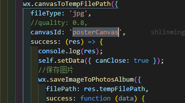 // <canvas id="myCanvas" canvas-id="myCanvas" type="2d"></canvas>wx.canvasToTempFilePath({wx.canvasToTempFilePath({// canvas: canvas,canvasId: 'myCanvas',success: (res) => {resolve(res)},fail: (error) => {console.error(error);resolve(error)}})说的是canvasId 你传的在哪呢