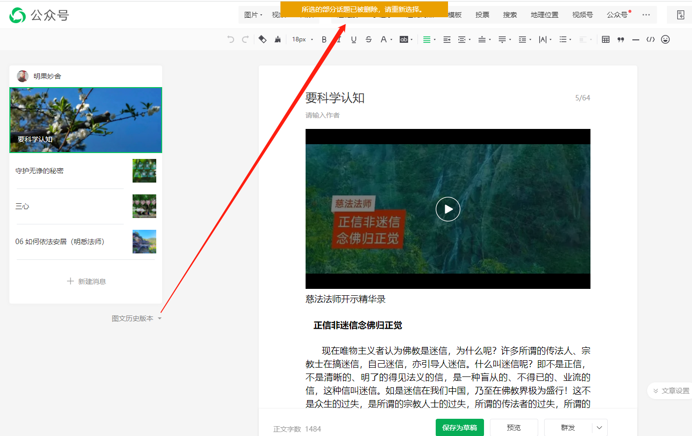 你好,你查看一下你文章所选择的话题,如果你的话题已经删除了那你要重新选择新的话题