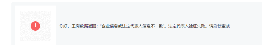 微信扫码刷脸认证的时候弹出 “你好,工商数据返回:“企业信息或法定代表人信息不一致”。法定代表人验证失败。请刷新重试。”