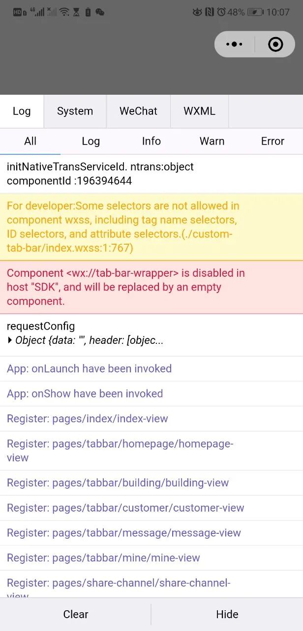 Component <wx://tab-bar-wrapper> is diisabled in host "SDK", and will be replaced by an empty component