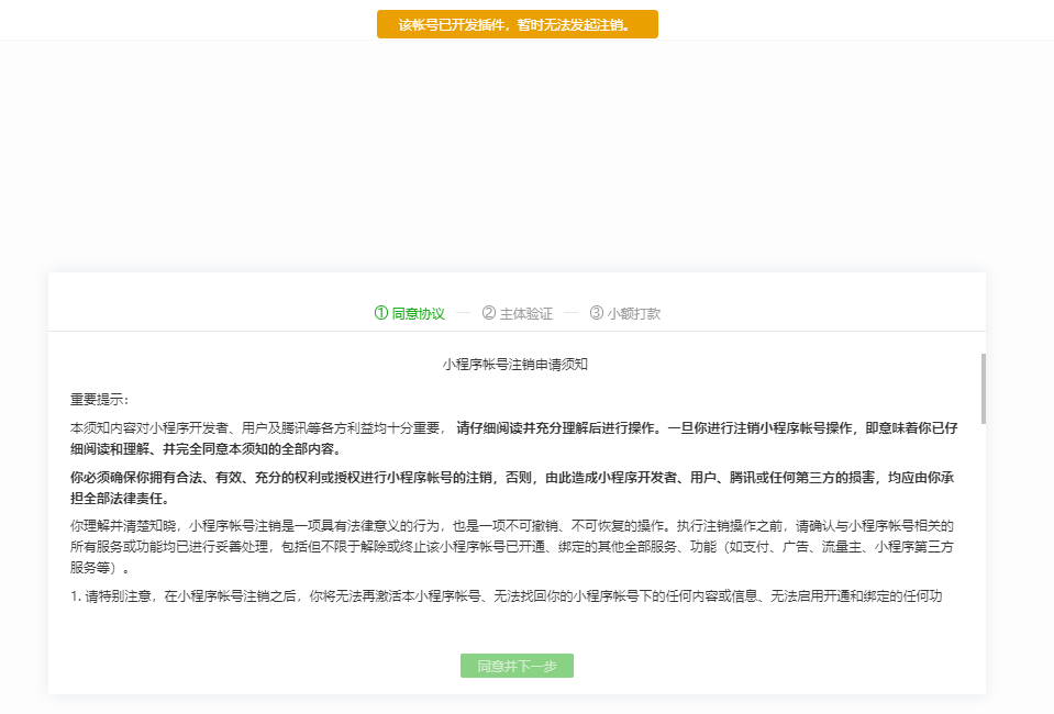 看图,打算注销小程序,提示这个,插件能注销吗?