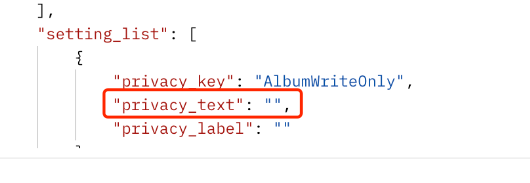 你查询出来的隐私配置 privacy_text 都没有内容呀。