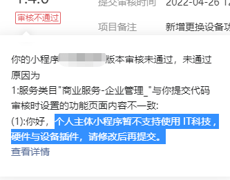 这种情况要怎么修改?之前也是个人主体,审核是通过的。现在是只能申请新的小程序了?