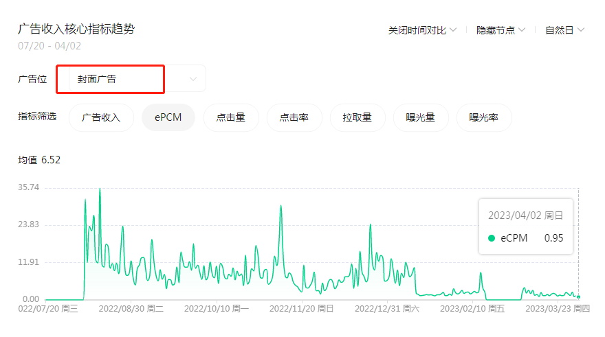 同样的路过,只放了一个封面广告。浏览人10倍了,eCPM反而只有原来的30%了。感觉这都是他们一言堂