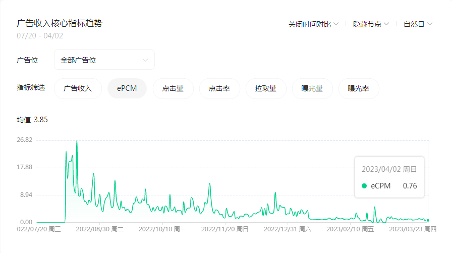 我可是发现个规律了,你的访问量大了,ecpm就低了。你要是今天访问量极低,ecpm特别高。总之就是套路,用ecpm控制给你的钱。