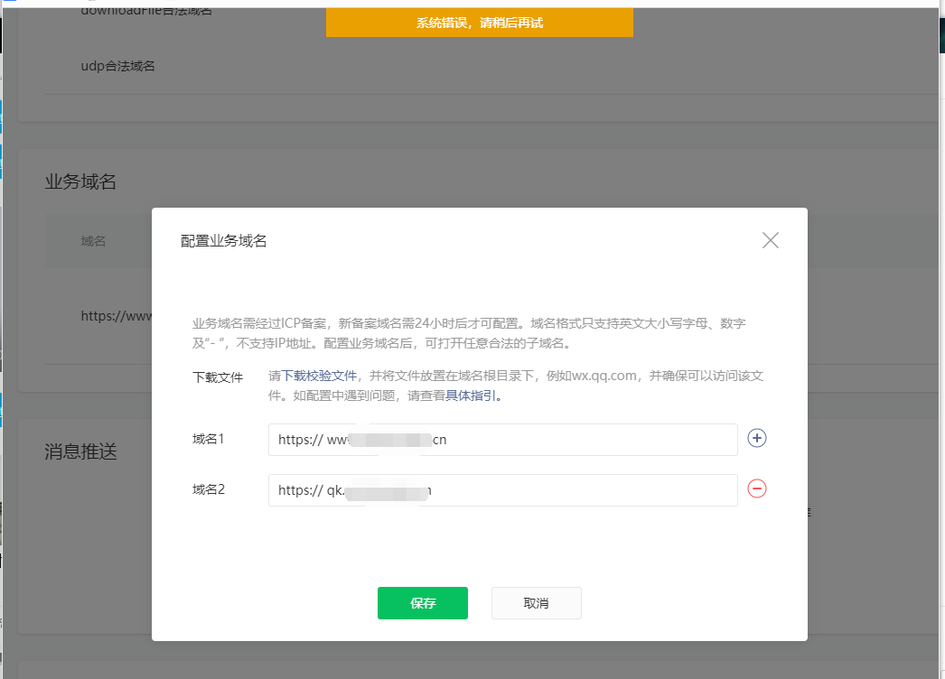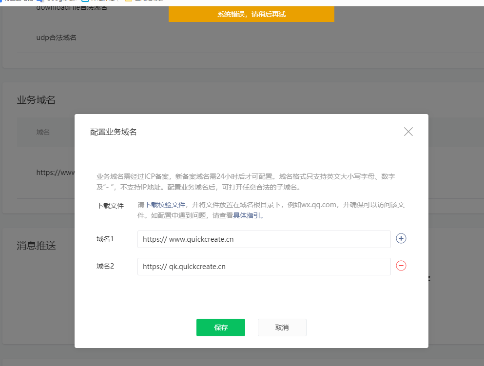 配置业务域名第二个总是出现这个奇怪的错误,换成其他的却没有这样奇怪的提示,请问要如何解决?完全没有头绪