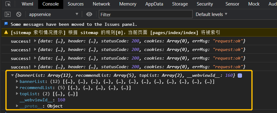 确实很奇怪,appdata左侧是页面栈,你一个都没有。你是在onlaunch()里面打了断点吗,有进入你的pages/index/index页面吗?我不清楚啥原因,重启模拟器有用不