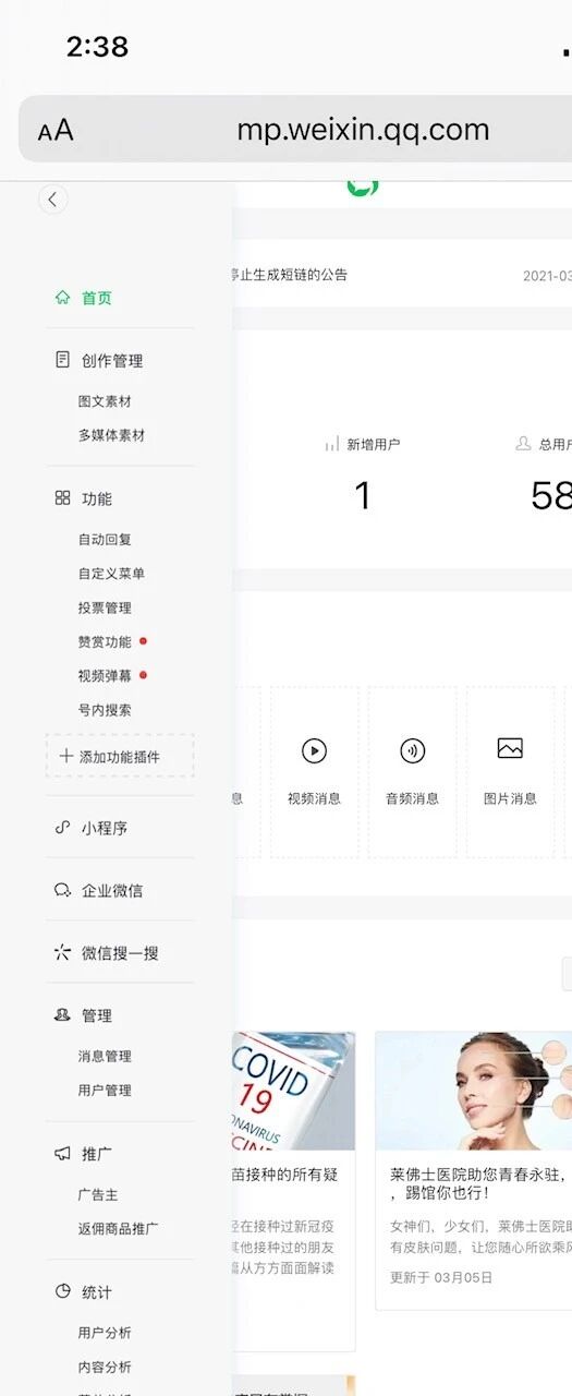 我们的公众平台页面左侧快捷菜单就没有原创管理的选项!