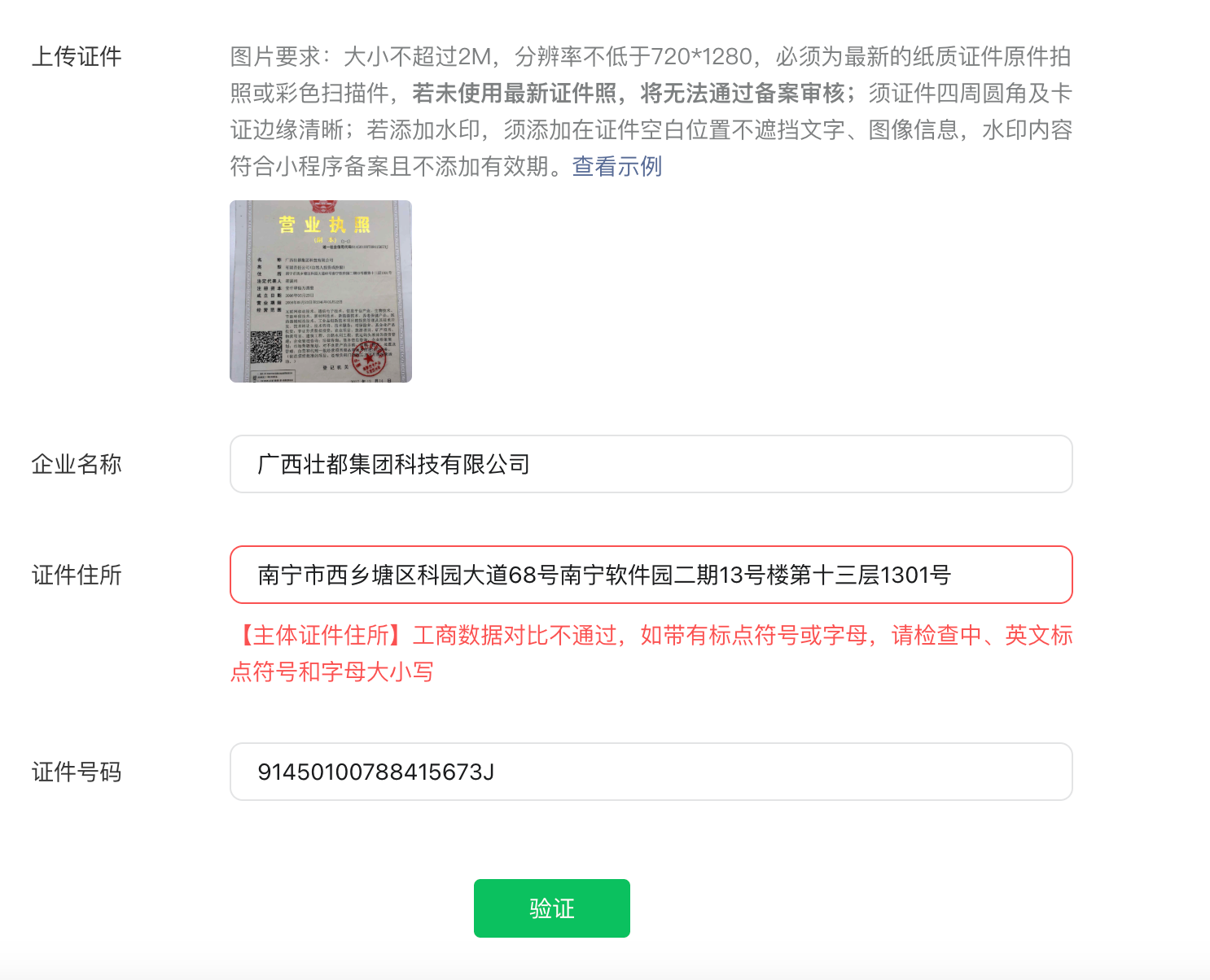 你好,如需重新上传营业执照进行修改主体信息,麻烦请根据以下步骤操作: 在设置-小程序备案-去备案-进入【填写主体信息】页面拉至底部,点击【取消】即可返回【验证备案类型】页面,若你已填写的证件类型、上传证件、主办单位名称、证件住所、证件号码需要修改,可在【验证备案类型】页面中进行修改。